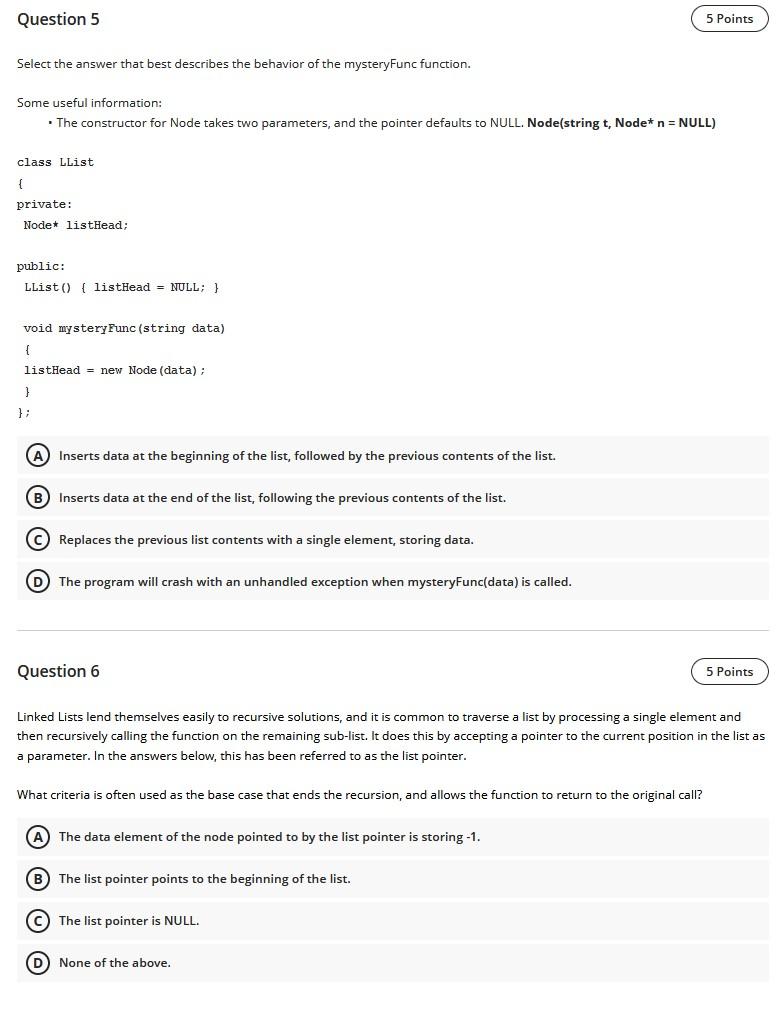 Solved Question 5 5 5 Points Select The Answer That Best Chegg Com